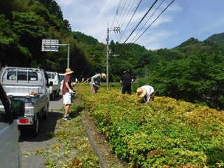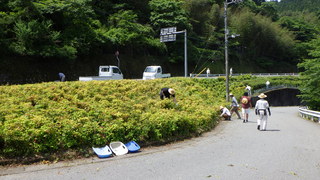 今回の活動では,県道16号線から坂本地区への入り口付近にあるツツジ園の除草作業を行いました。
