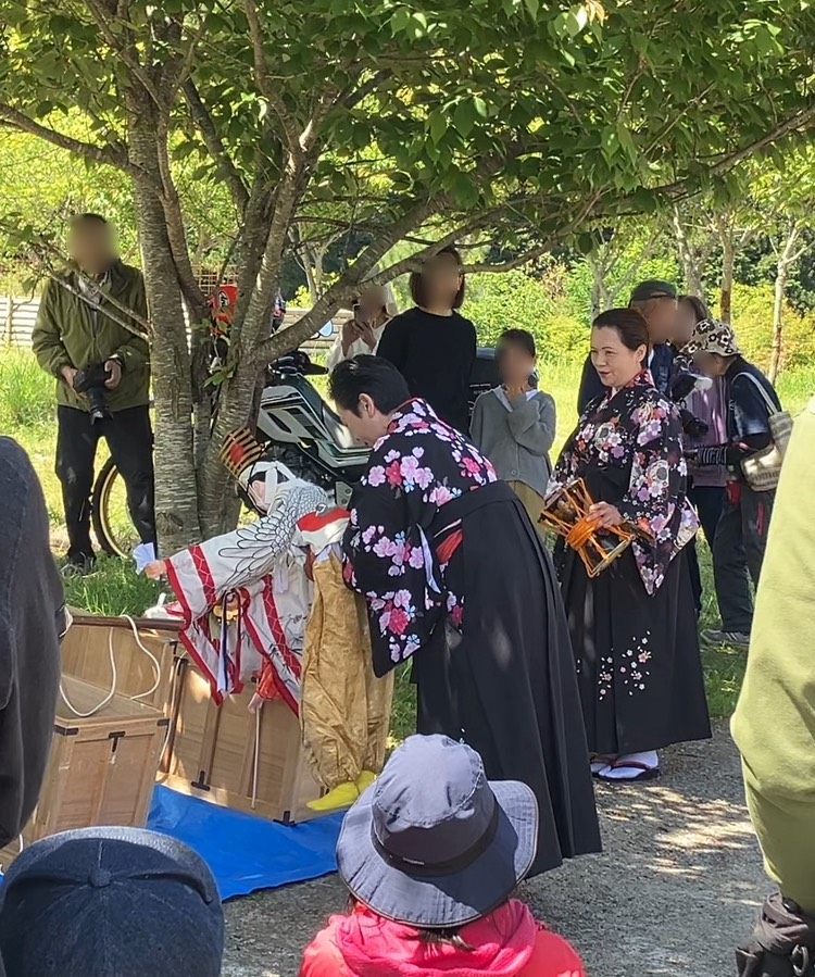作業に先立って、ふるさと団体が開催した豊穣祭・阿波木偶(でこ)「三番叟まわし(阿波木偶箱まわし保存会 徳島県指定無形民俗文化財)」に参加しました。