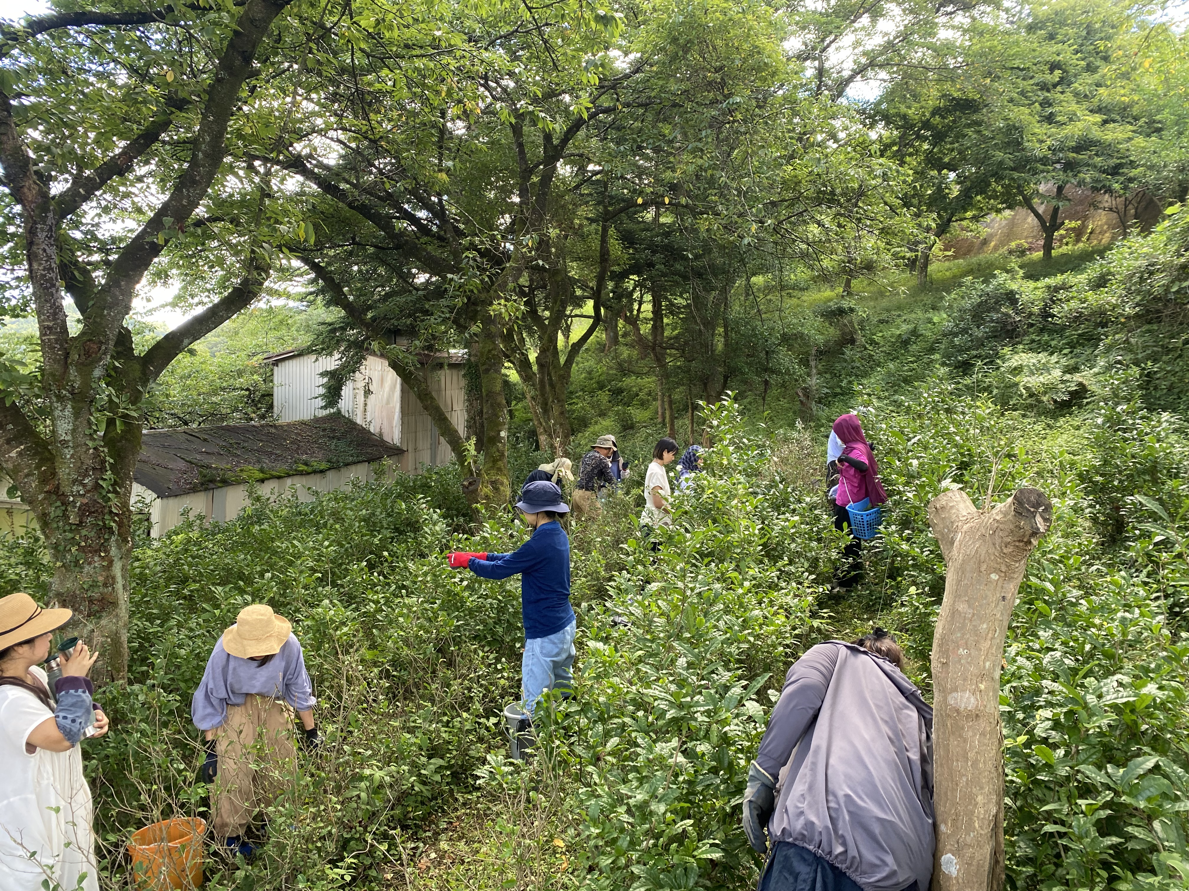 まず午前中は、全員で晩茶摘みを行いました。