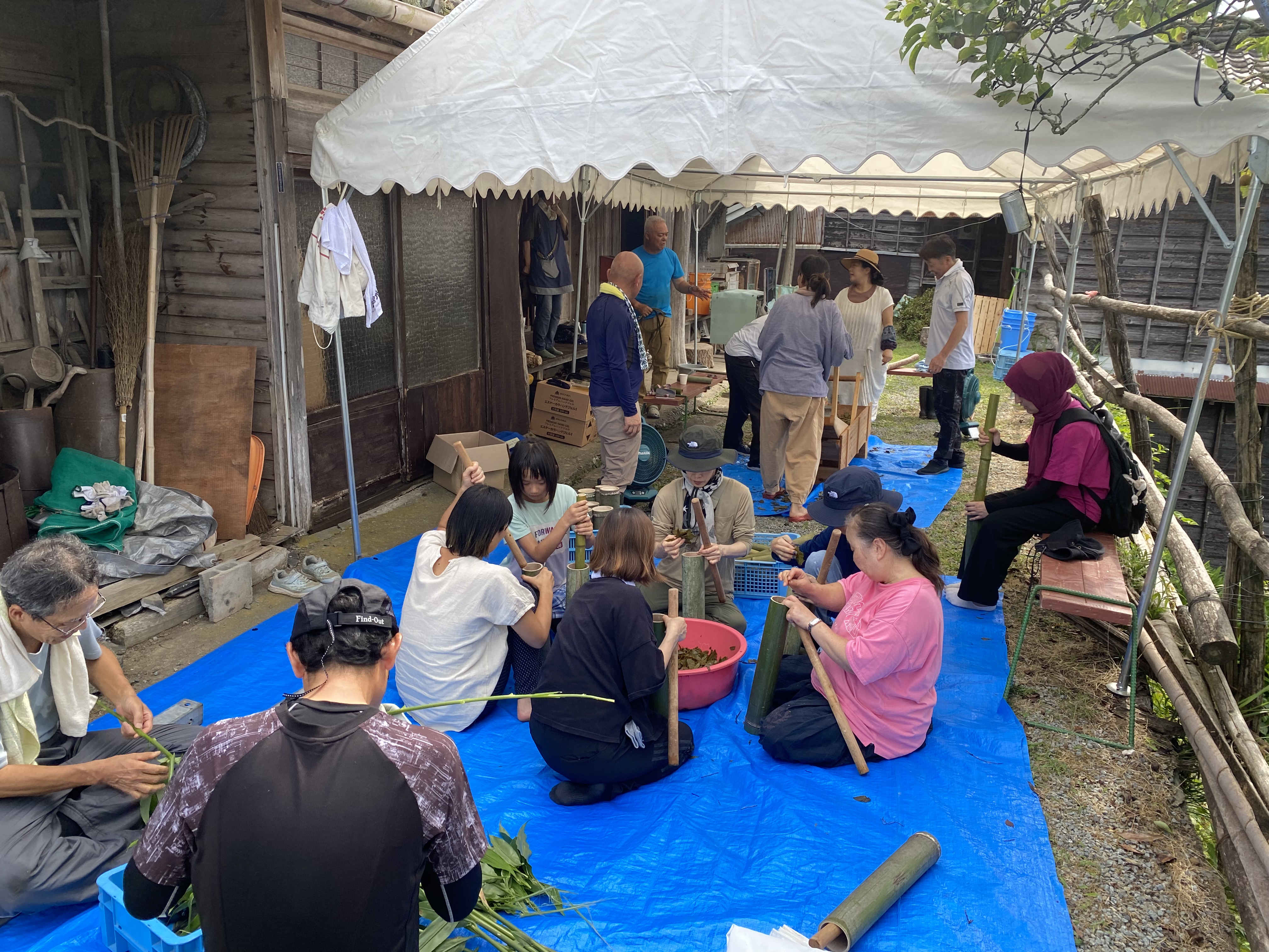ふるさと団体、協働パートナーの協働で、家賀における雲南の竹筒晩茶づくり再現が楽しく行われました。