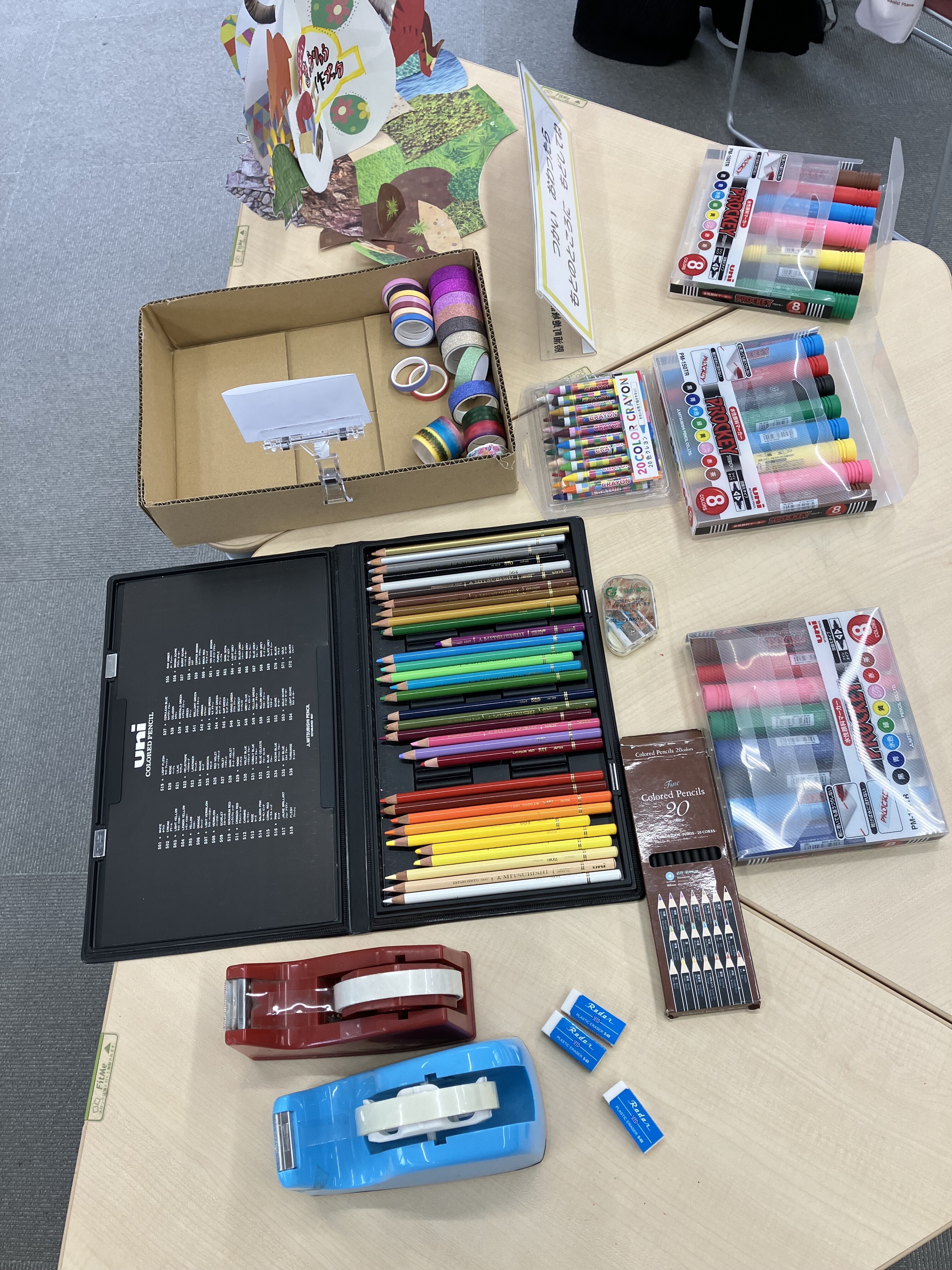 ワークショップの内容は、きょうりゅうブックという知育テキストを切り抜き、恐竜の色塗りやコラージュを作成するものです。