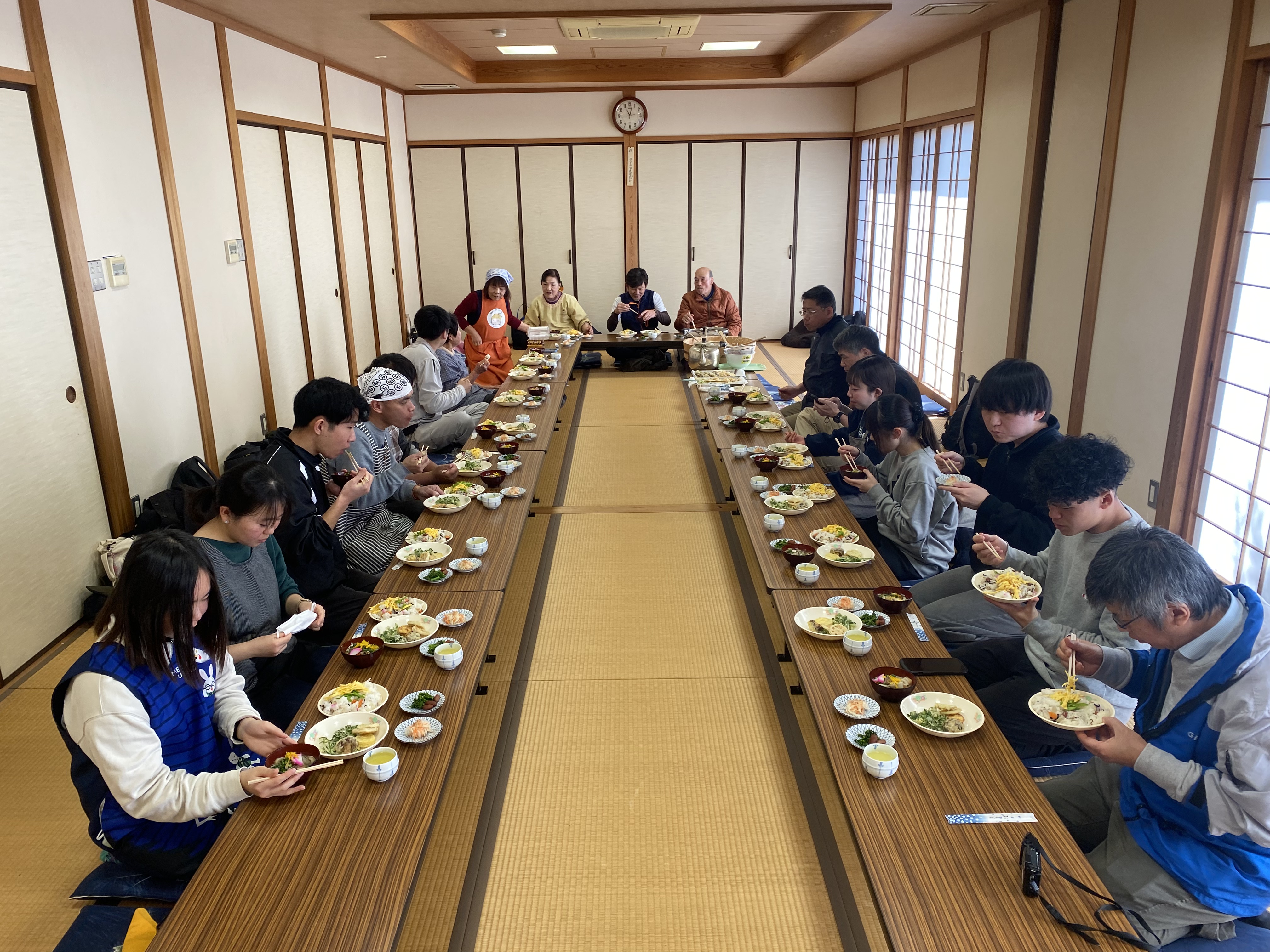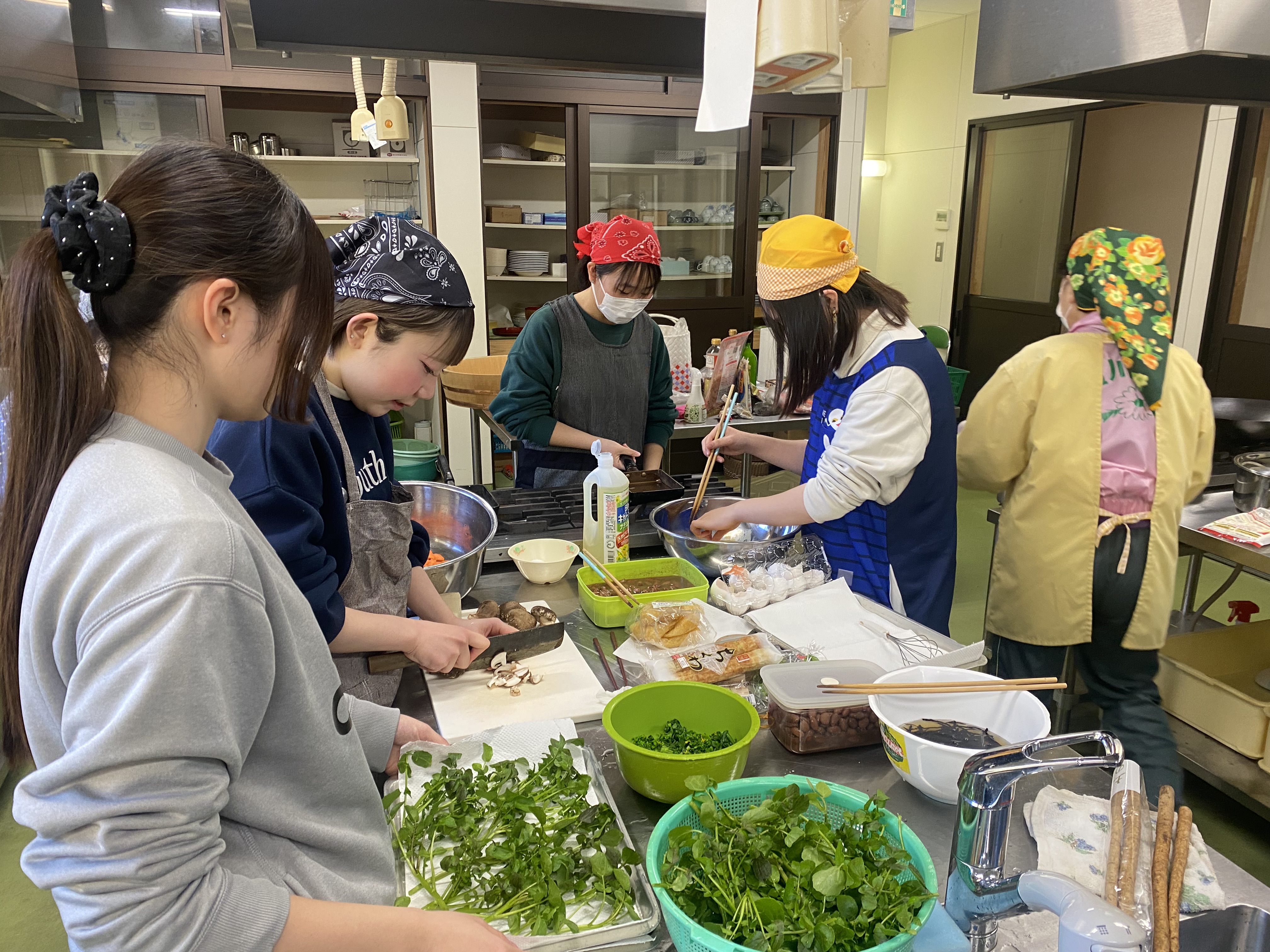 ふるさと団体さんがこの日のために用意してくださった食材を分担して調理しました。