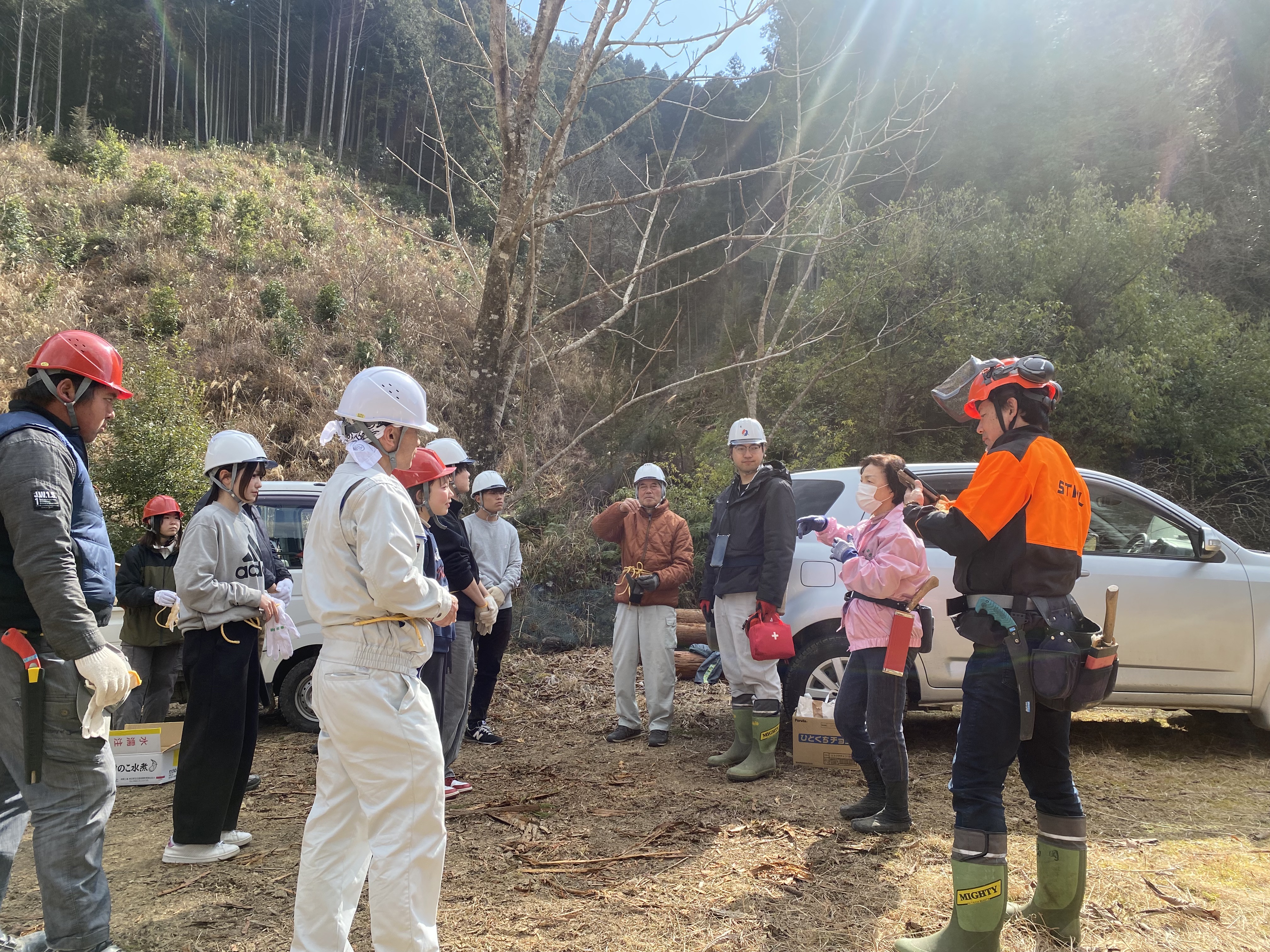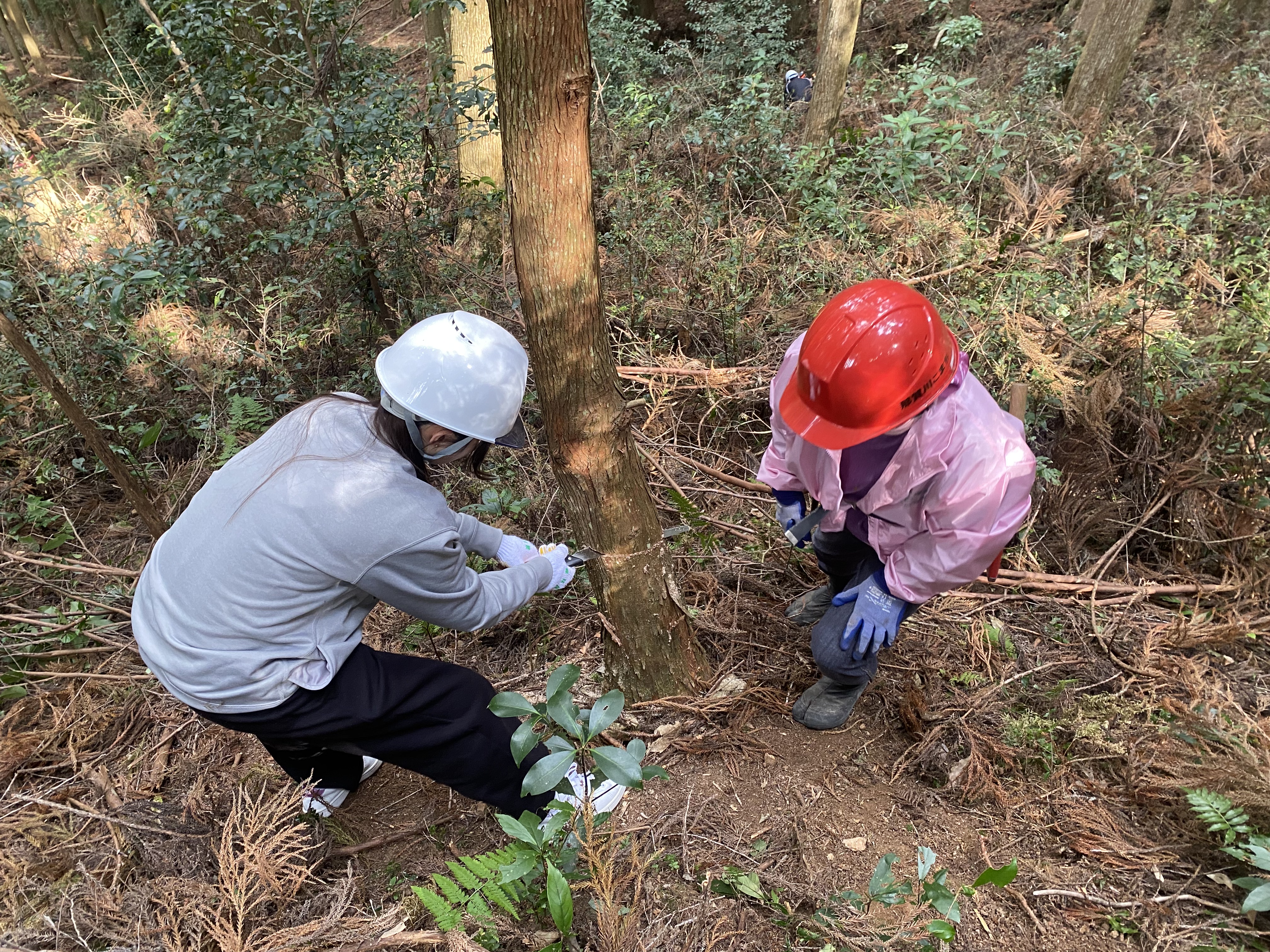 午後からは、山へと入り、間伐作業を体験しました。